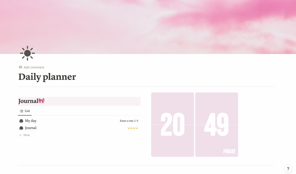 Unlock a tailored daily planner featuring a daily-refresh journal setup, one-button morning and night routines, a progress-tracking habit tracker, a to-do list, and Notion Calendar integration. Everything you need for a flawlessly organized day is at your fingertips. Simplify your life and achieve success effortlessly. Get your ultimate daily planner now!